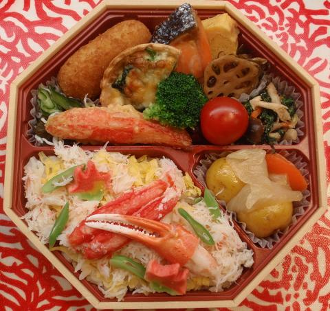蟹の身をたっぷりのせた蟹ご飯に蟹クリームコロッケや蟹とほうれん草のキッシュなどを盛り込みました。