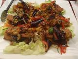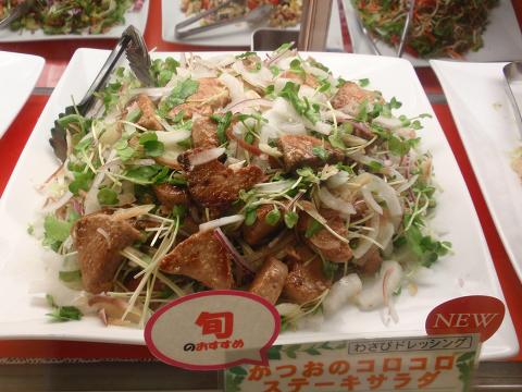 かつおのステーキをたっぷりの新たまねぎと一緒にわさびドレッシングで