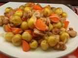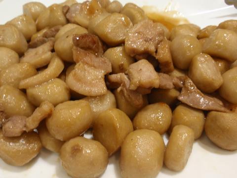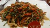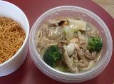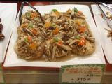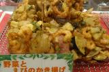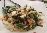 旬の白菜とブロッコリー、きのこの入ったあんかけです。他に豚肉、にんじん、しょうが、エビ、うずらの卵も入っています。