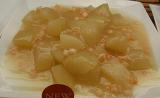 だしのうま味で薄味に煮てエビあんをかけました。冬瓜は果実の95%が水分で100gあたりのエネルギーはたったの16kcal。ダイエット中の方にもうれしい一品です。