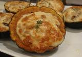 くり抜いた夕張坊ちゃんにきのこ、蒸し鶏、ホワイトソースを詰めたグラタン