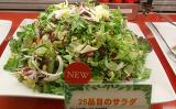 季節の野菜を25品目揃えたサラダ。玉葱ドレッシングがおいしささらにUP!