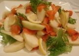 キャベツのシャキシャキ感がシーフード(イカ、エビ、ホタテ)とマッチします。粒マスタードをかくし味的に入れています。
