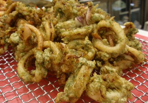 そら豆とエビの組み合わせのかき揚げ。豆の皮をむいているので食べやすいです。